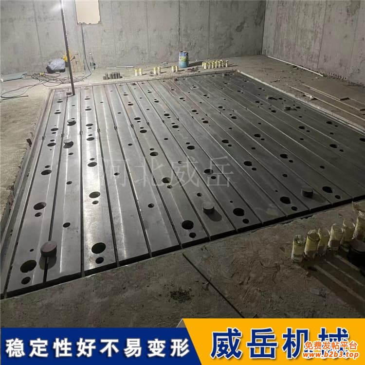 1.前期准备:将铸铁装配平台放置在平整地面,清理台面、地脚螺栓接触面的铁屑、油污;根据平台规格(如1000×2000mm选4个支撑点,3000×5000mm选6个支撑点)均匀布置可调地脚螺栓,确保受力均衡。