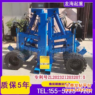 (1)龙升轮式集装箱搬运车 是一款集装箱提升和运输的常用工具,只需两个人即可轻松提升或降低集装箱,可替代跨运机、叉车、吊车。