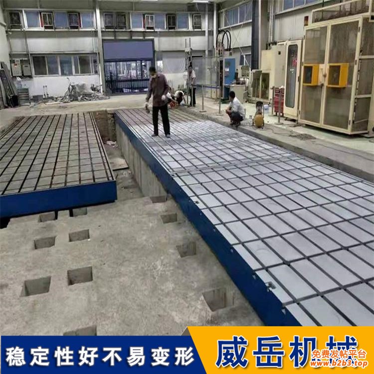 “岿然不动”的前提是承载能力与实际需求完全匹配,设计时需明确三类核心载荷参数:一是设备静态载荷,即设备自身重量的均匀分布载荷;二是动态载荷,如加工过程中产生的振动冲击、工件装卸时的瞬时载荷;三是长期疲劳载荷,需考虑设备长期运行下的载荷累积效应。若未充分调研载荷需求,仅按通用标准设计,可能出现地板局部凹陷、整体变形等问题。例如,用于重型机床的T型槽铁地板,若未强化承载核心区域的结构,易在机床高速运转时出现共振,破坏稳定性。